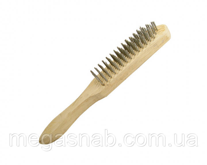 Щітка ручна 6-рядна сталевий дріт дер. корпус Intertool BT-0003 призначена для грубої зачистки поверхонь з металу. Матеріал щітки — сталевий дріт.